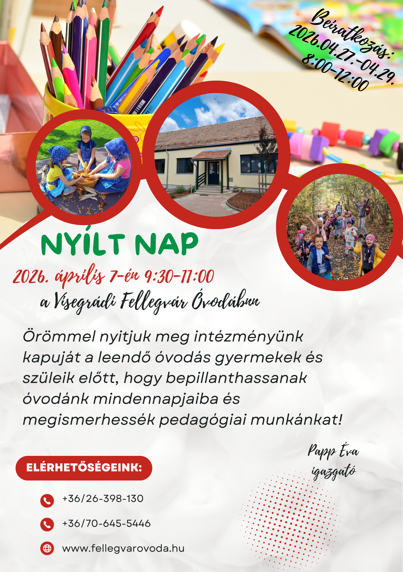 Kérem, a fentiekben meghatározott időpontban gondoskodjanak gyermekük óvodába történő beíratásáról.